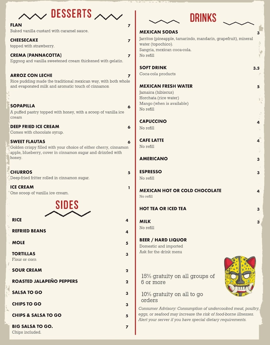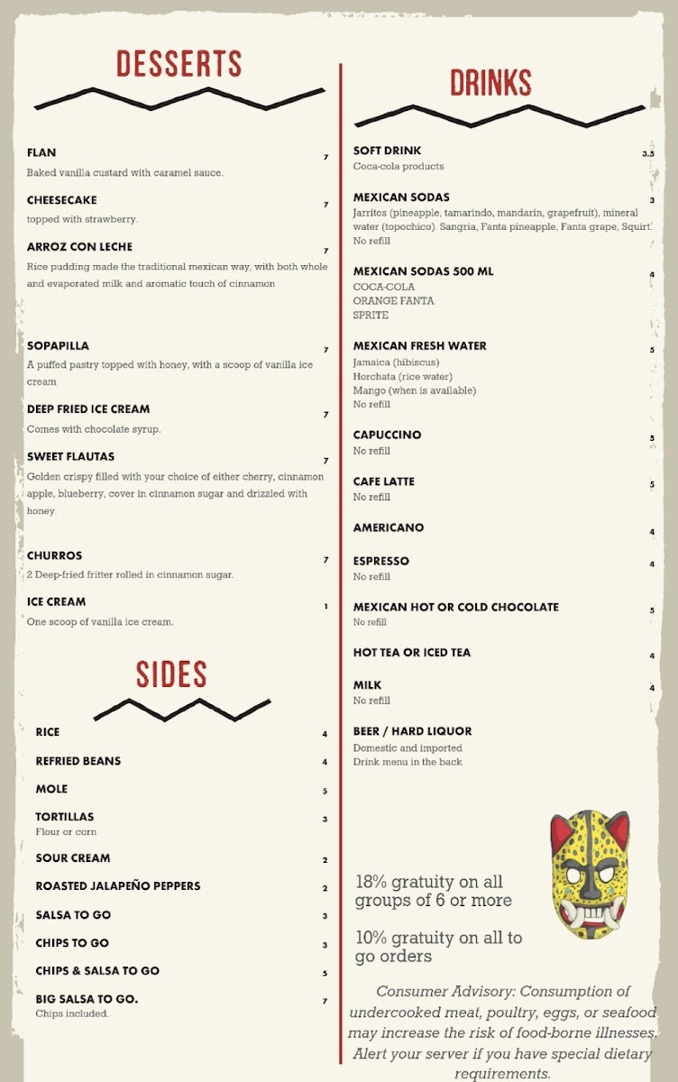 Overall, the food and drinks here provide a familiar, authentic taste of Mexican cuisine that suits both weeknight dinners and weekend gatherings. The menu’s approachable variety encourages diners of all ages to find something satisfying, whether they’re visiting for a quick bite or a relaxed meal with family and friends.